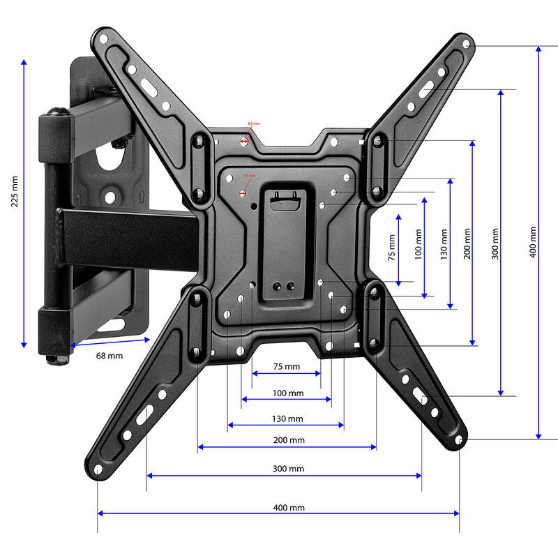 Suport TV de Perete, Pivotant, Universal, Diagonala 22”- 65” ( 56 – 165cm ), Max 40 kg, Vesa 75×75 – 400×400, Negru