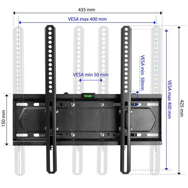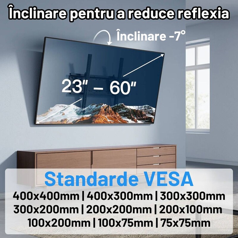 Suport TV de Perete, Premium, Montare pe Perete, Reglabil, Inclinare, Universal pentru Televizoare 23 – 60 Inch (58 – 152 cm), Compatibil VESA 75×75 – 400×400, Max 52 kg, Instalare Usoara, Negru