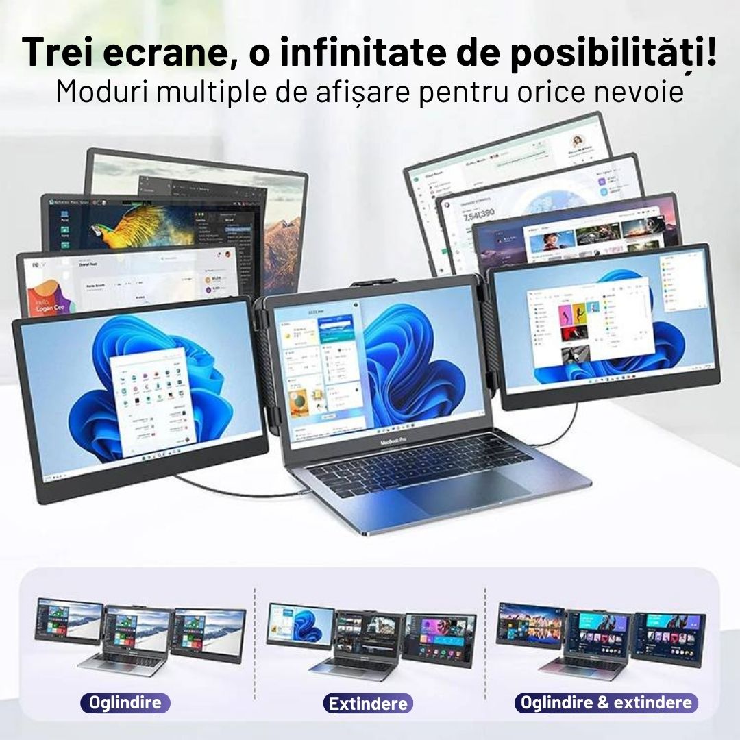 Transforma-ti laptopul intr-o statie de lucru profesionala cu ajutorul monitorului portabil. Proiectat pentru a-ti spori eficienta si a-ti simplifica viata digitala, ofera o solutie dual-screen portabila si pliabila, ideala pentru lucrul de acasa, calatorii sau birou.