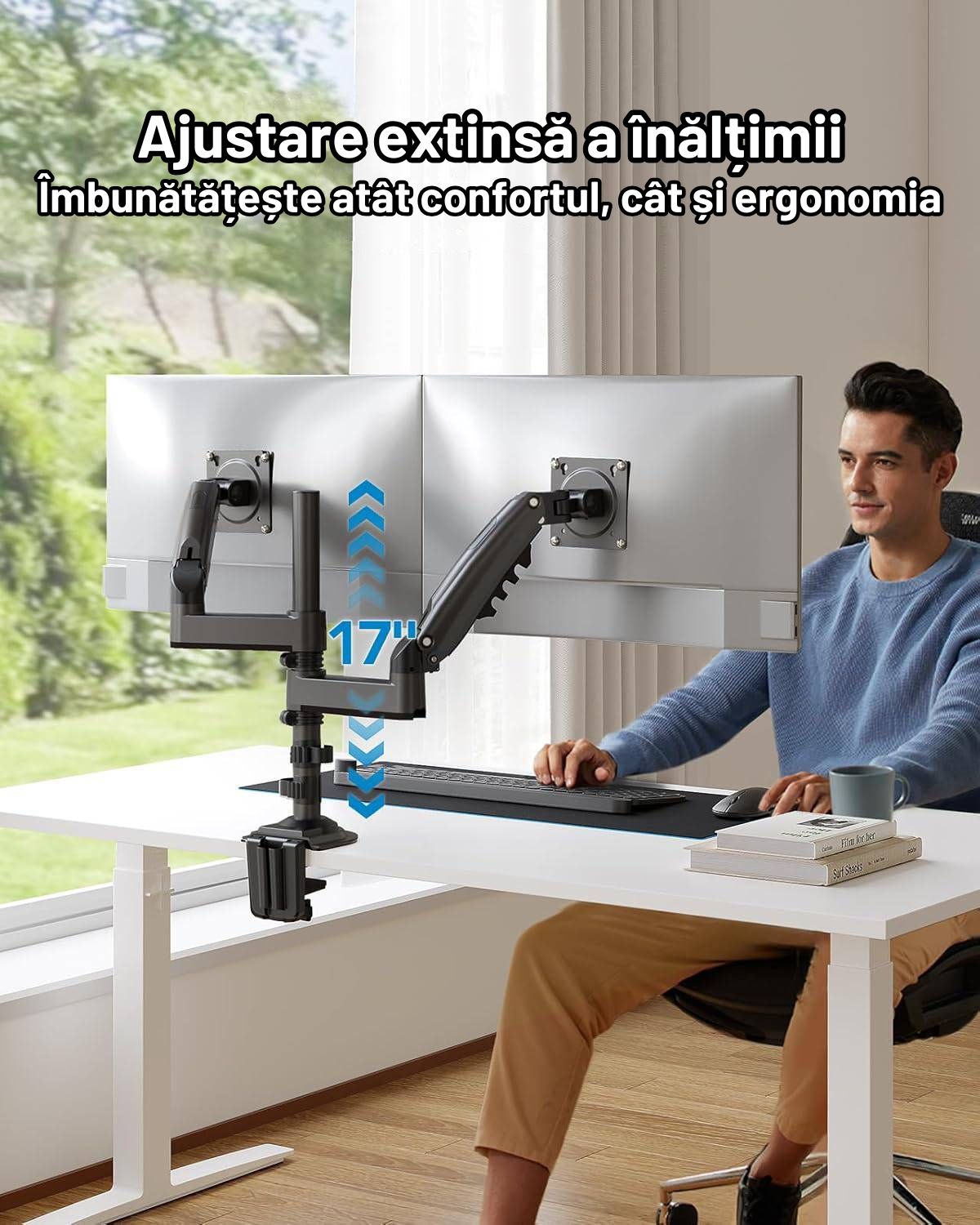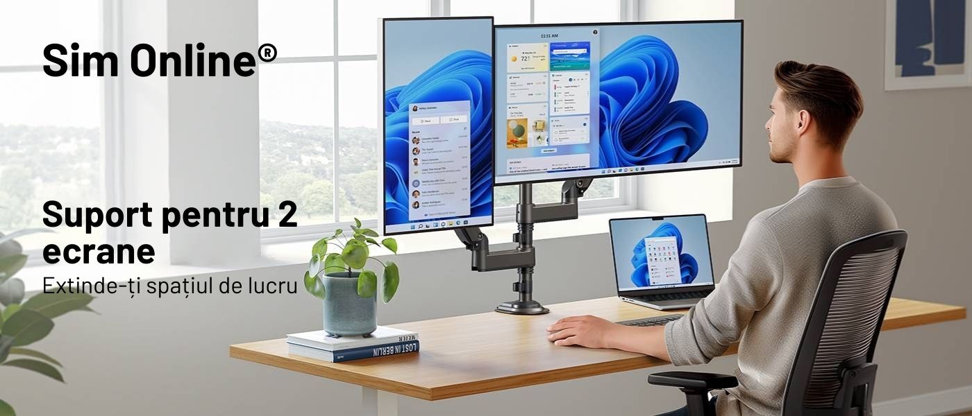 Suport 2 Monitoare Premium pentru Birou 17-32 Inch – Stabilitate și Confort Ergonomic