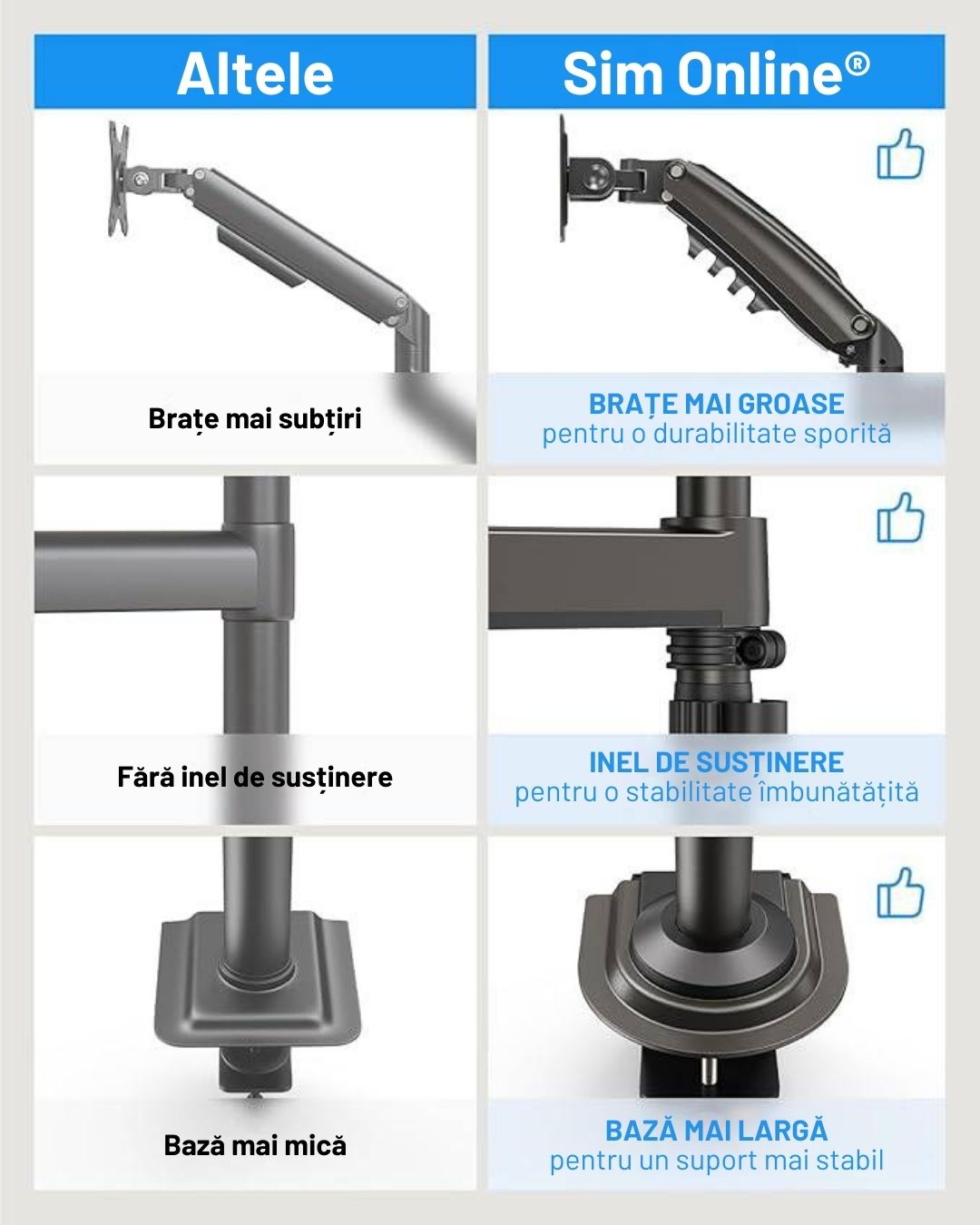 Caracteristici principale suport 2 monitoare premium pentru birou 17-32 inch: