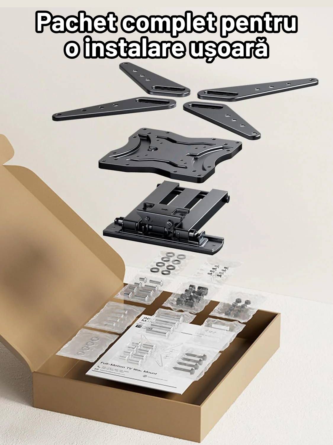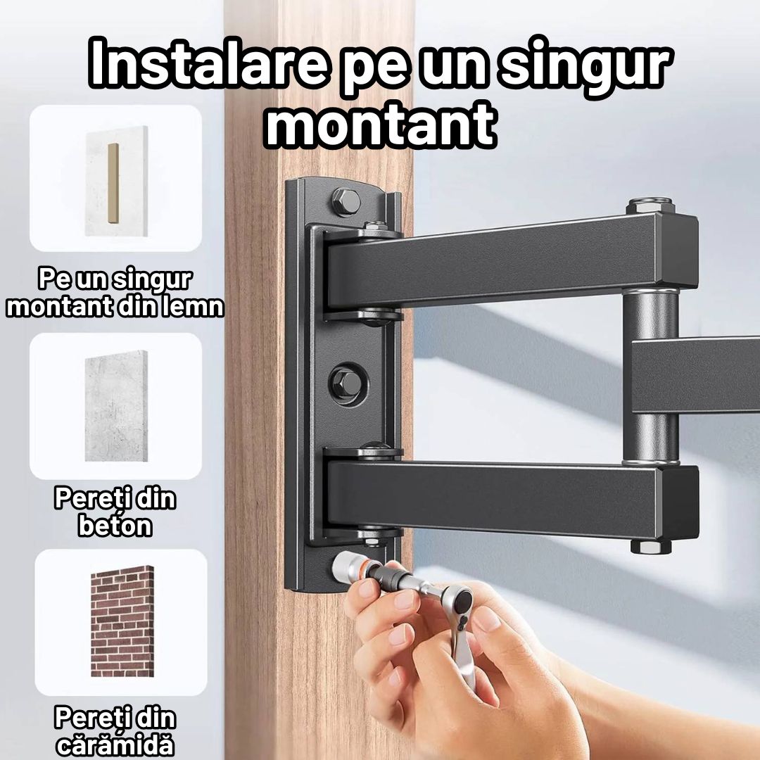 Montarea televizorului nu a fost niciodata mai usoara! Designul inteligent permite o instalare rapida si sigura, fie pe un singur montant, fie pe pereti din caramida sau beton. Instructiunile detaliate te ghideaza pas cu pas, asigurand o fixare solida si fara griji pentru televizorul tau de 26 pana la 60 de inch.